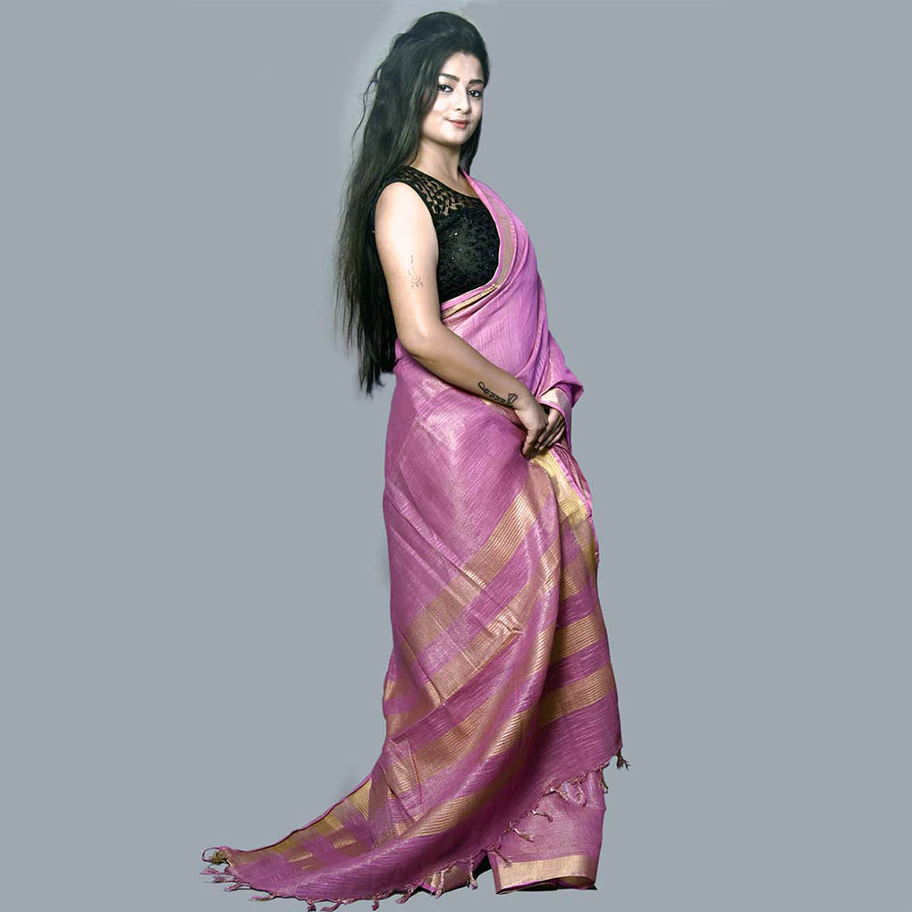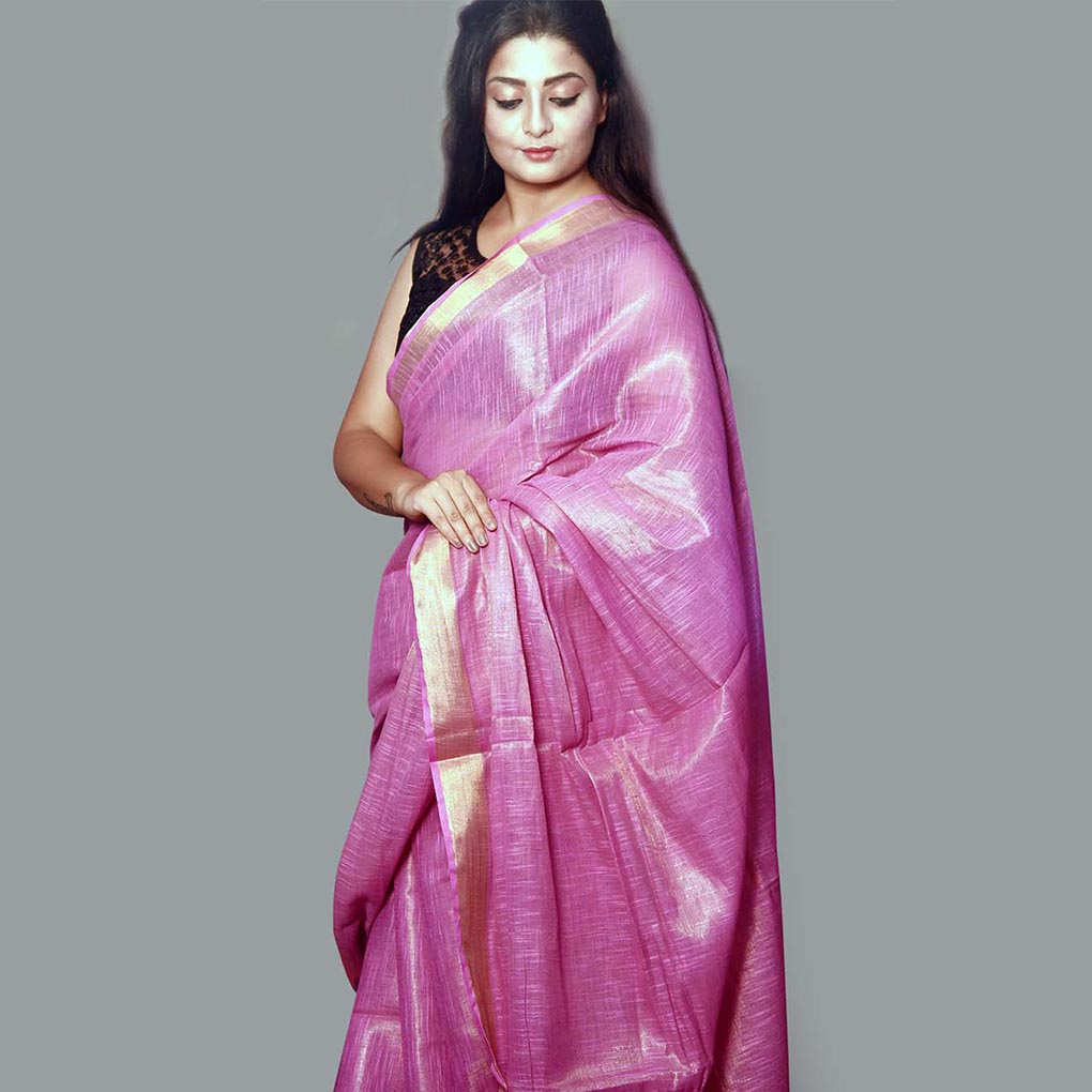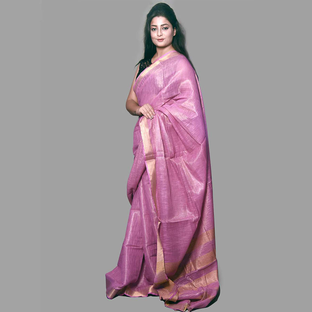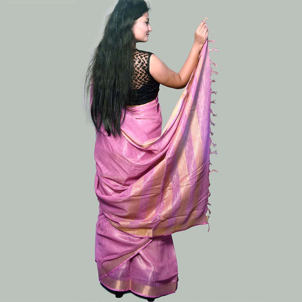 Elegant cotton tissue zari saree with striped pattern and subtle sheen. Includes unstitched blouse piece. Perfect for festive, formal, or everyday occasions with a touch of tradition.