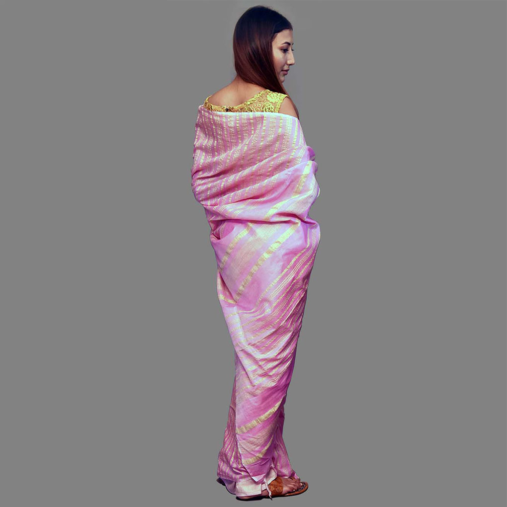 Handloom Pink Linen Saree