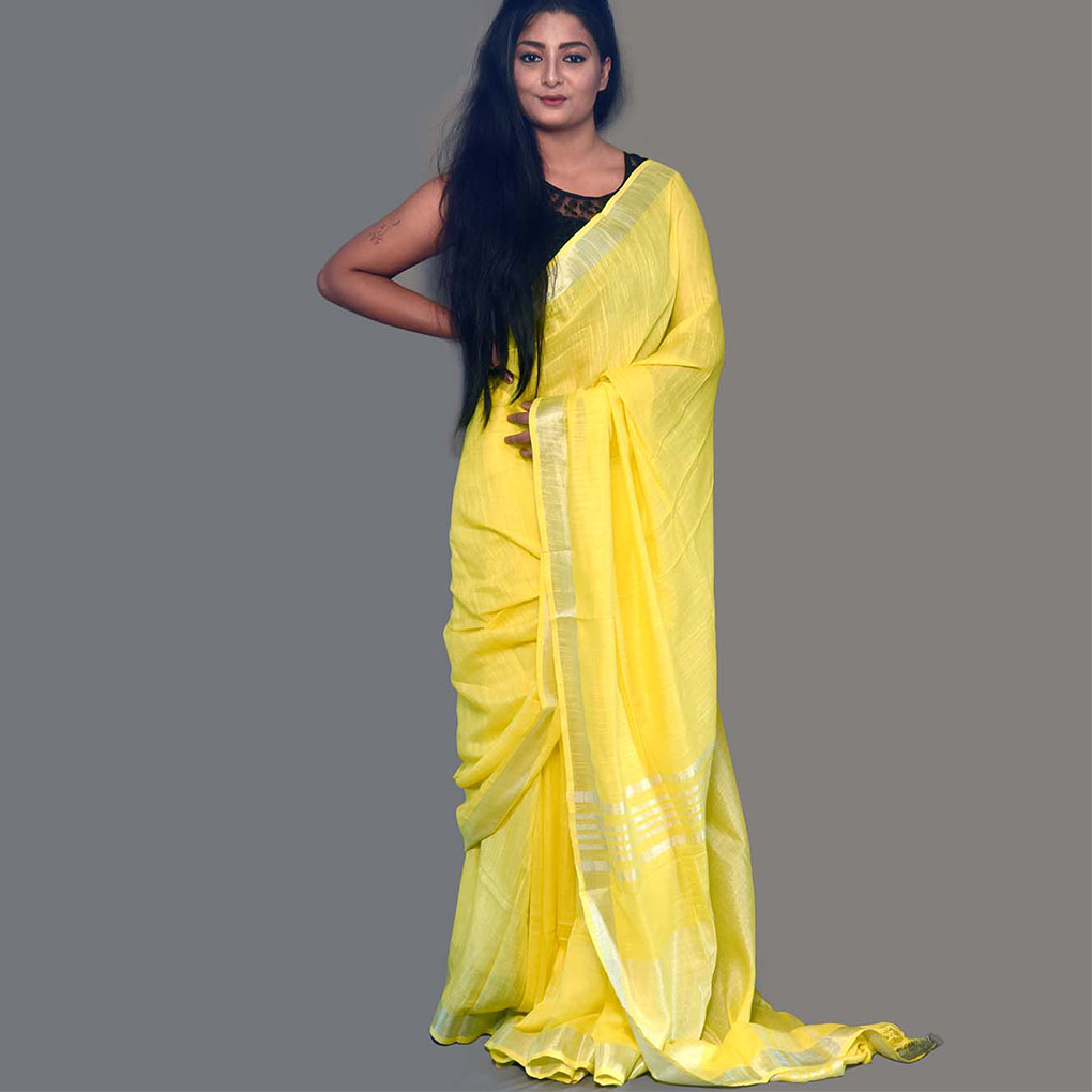 Saree Type : Linen Yellow saree
