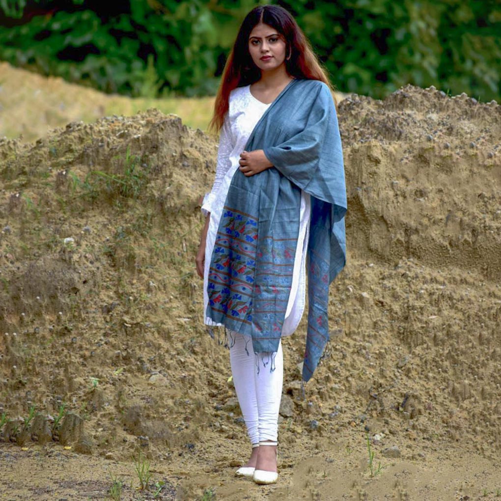 Product type : Handloom silk geometric floral stole